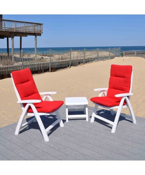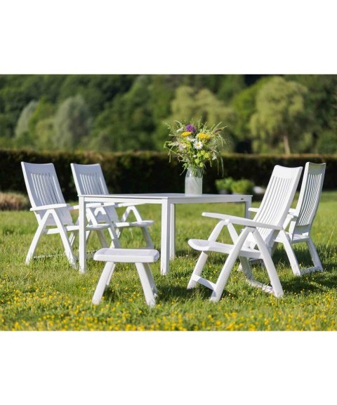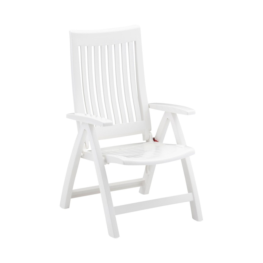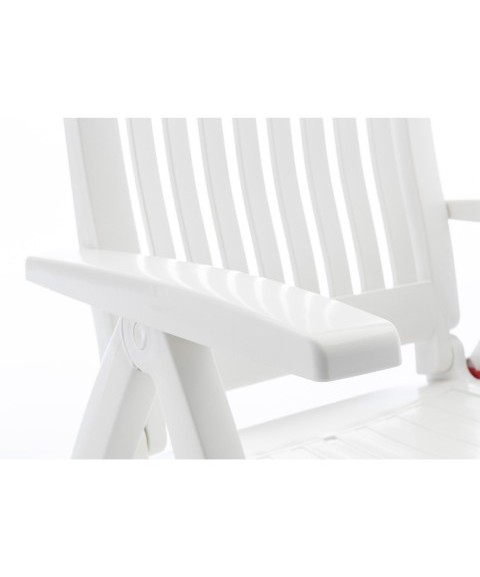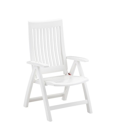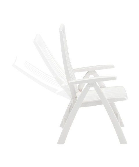 Cuenta con un respaldo regulable en varias posiciones, que permite adaptarse a distintos momentos de uso: desde una postura más erguida para leer o conversar, hasta una posición más reclinada para relajarse. Fabricado en resina/polímero resistente, soporta perfectamente el uso en exteriores y es fácil de mantener.