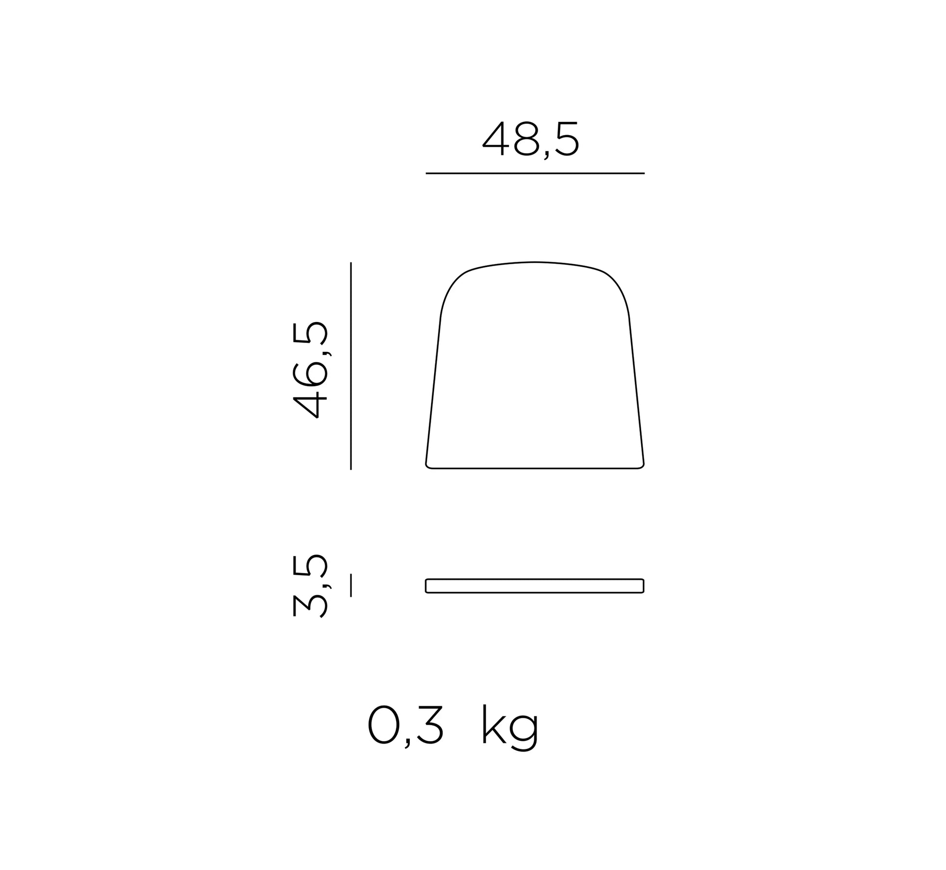 - Ancho: 48,5 cm / Largo: 46,5 cm.