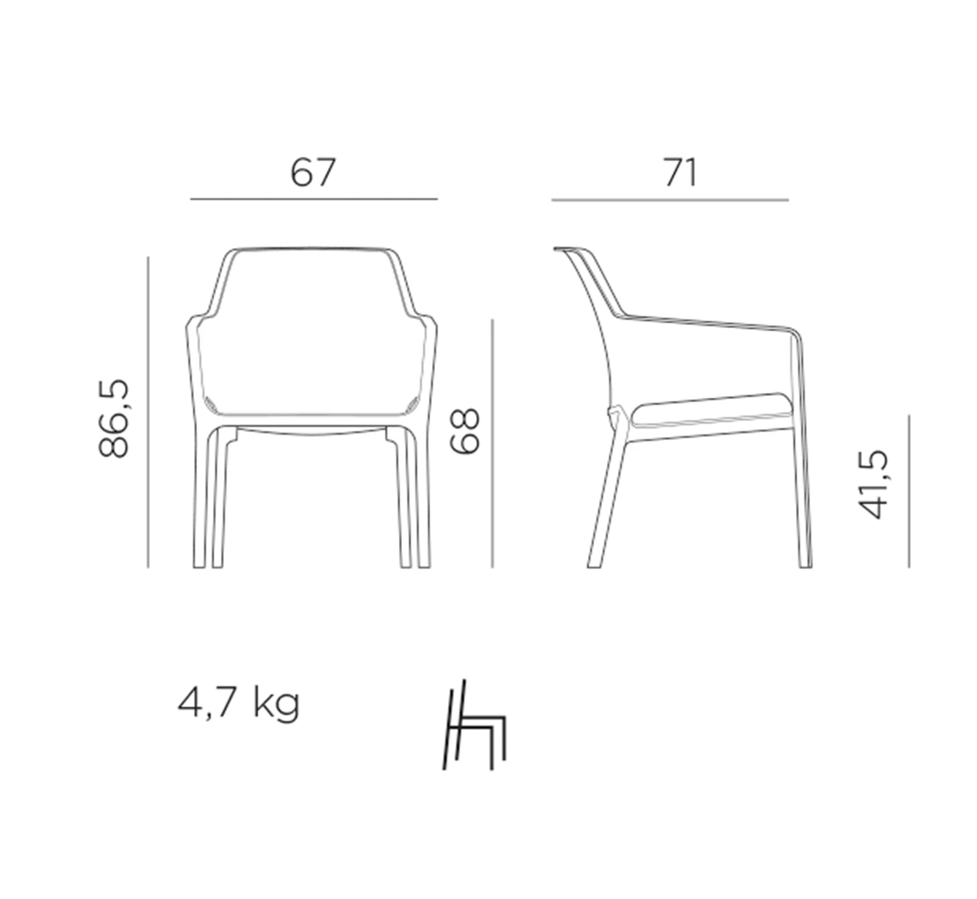 - Compuesto por dos sillones NET RELAX, un banco NET RELAX y una mesa NET.