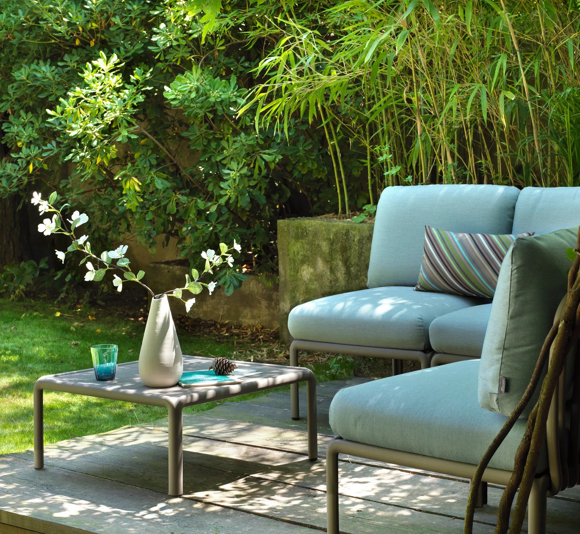 - Cojines desenfundables de tejido acrílico: lavable a 30° y protección anti manchas y anti moho.
