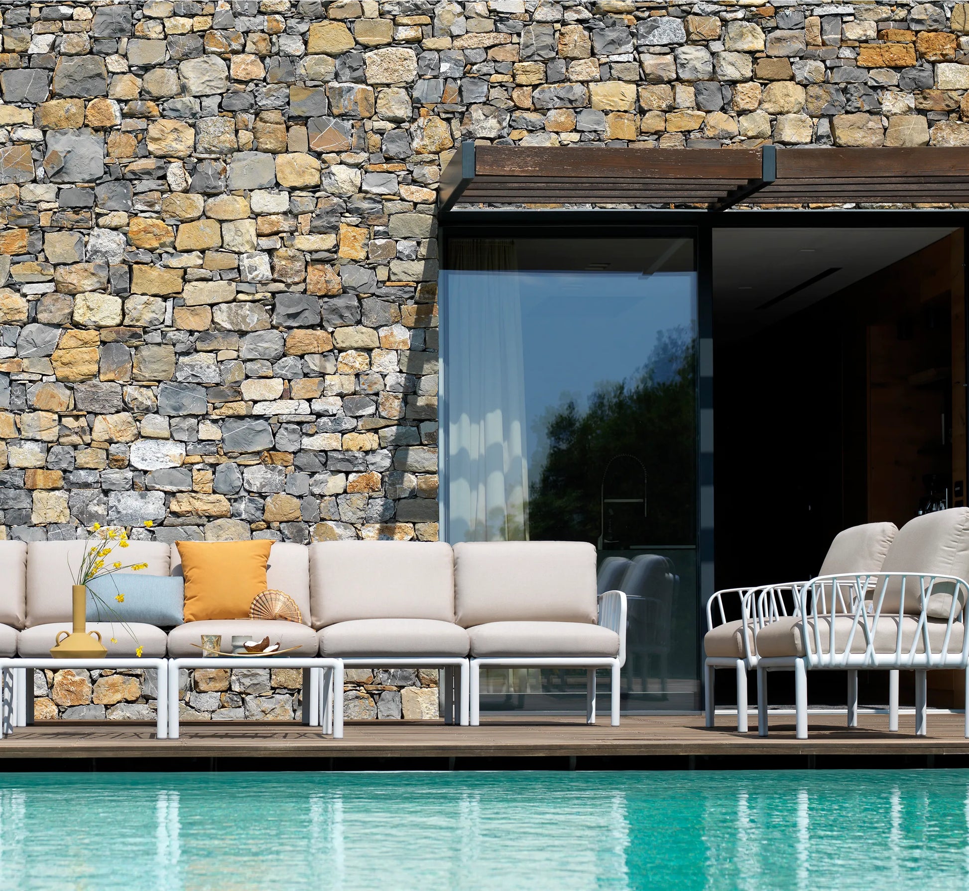 El Elemento Central Komodo como la pieza que completa el set KOMODO perfectamente. Este módulo es la solución de mayor eficacia para articular espacios de relax a tu gusto. No es solo un lugar donde sentarse; es la garantía de que tu espacio de bienestar puede evolucionar, crecer y transformarse al ritmo de tus necesidades. Es la elegancia italiana en su estado más puro y funcional.