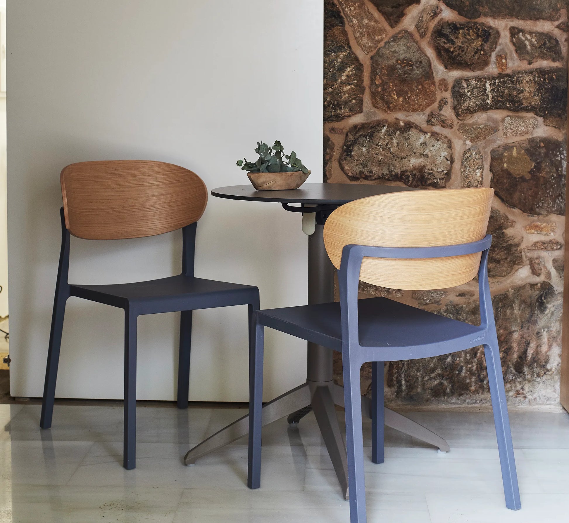 La silla BAKE WOOD es una pieza de autor. En Skalar, nos fascina cómo Ezpeleta ha logrado integrar la tecnología del polipropileno con la chapa de roble y haya, creando una silla que visualmente compite con el mueble de interior más exclusivo. Es la elección perfecta para un hotel boutique que quiere unificar la estética de su salón y su terraza cubierta. Su comodidad es excepcional y su diseño, un éxito garantizado en cualquier proyecto de interiorismo que valore la distinción.